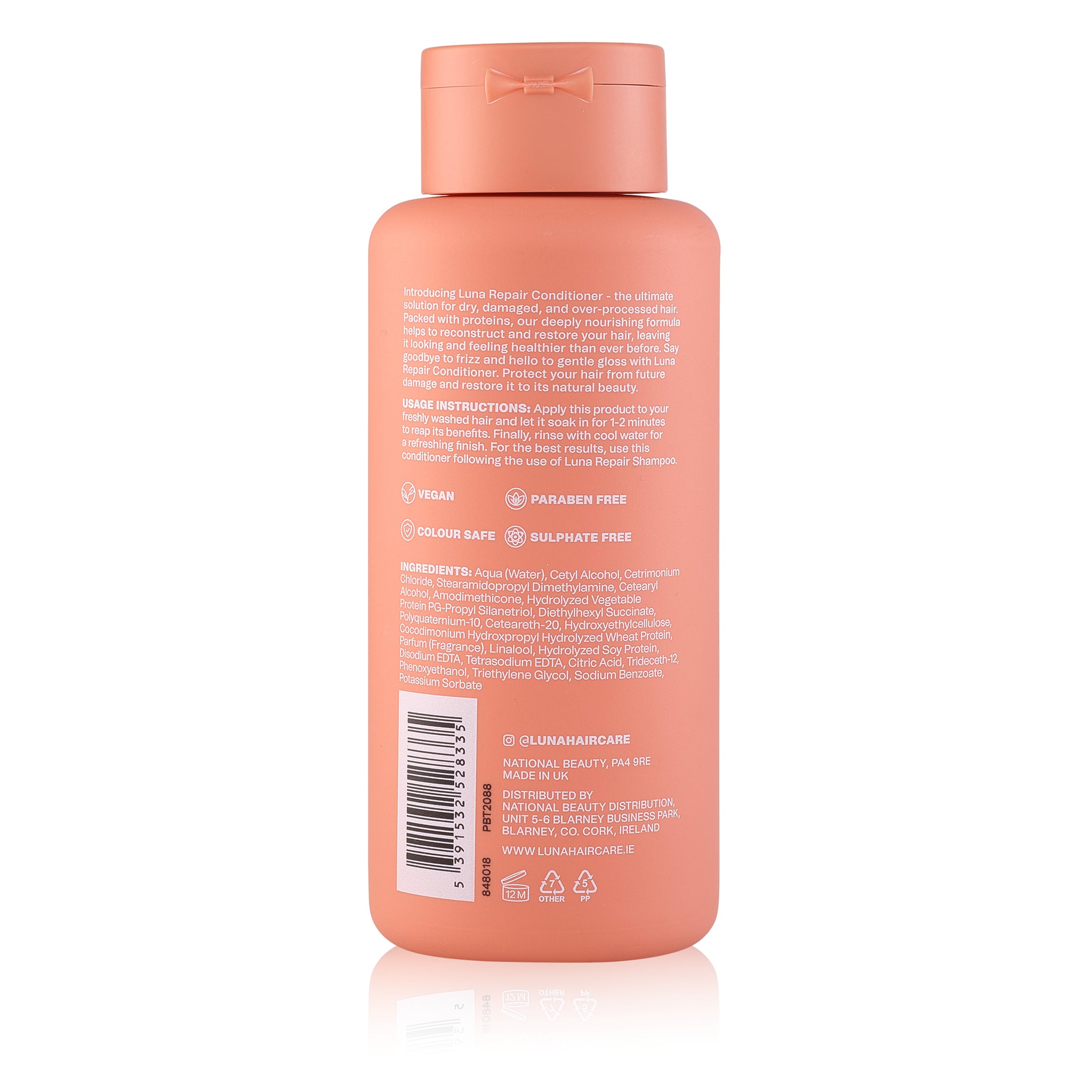 Introducing Luna Repair Conditioner- the ultimate solution for dry, damaged, and over- processed hair. Packed with proteins, our deeply nourishing formula helps to reconstruct and restore your hair, leaving it looking and feeling healthier than ever before. Say goodbye to frizz and hello to gentle gloss with Luna Repair Conditioner. Protect your hair from future damage and restore it to its natural beauty.